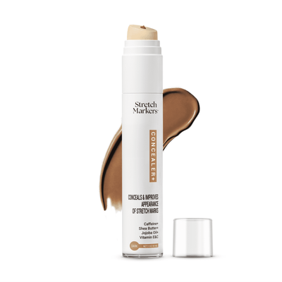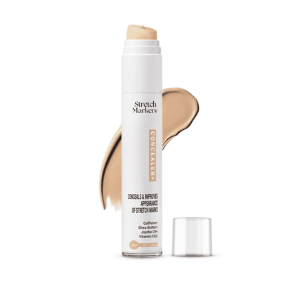 With our concealer, you’ll gain immediate confidence as it effectively blends and hides stretch marks, providing instant coverage. For longer-lasting results, we recommend using it in conjunction with our StretchMarkers therapy, which contains active ingredients (Peptides, Hyaluronic Acid and Retinol) designed to reduce and heal stretch marks over time. While many users see visible improvements within 4 to 8 weeks of consistent application of the therapy, the concealer allows you to feel your best right away. It also includes hydration, moisturizing and collagen producing ingredients to assist with healing.